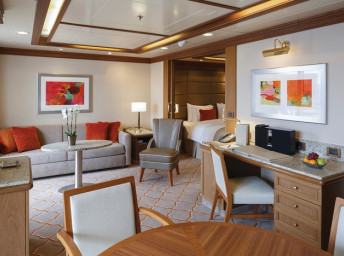 | R1 - Royal Suite 1 92 m² (vrátane balkóna 12 m²), Spálňa s obývacou a jedálenskou časťou. 7. paluba vpredu. Max 3 osoby. | 40 500 € 13 500 € za osobu | ||