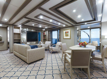 | R2 - Royal Suite 2 127 m² (vrátane 18 m² balkónov). Royal Suite prepojená s Veranda Suite. 7. paluba vpredu. Max 5 osôb. | 40 800 € 40 800 € za osobu |