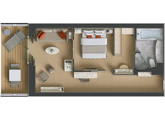 | SV - Superior Veranda Suite 30 m² + balkón 6 m². 7,8,9. paluba. Max 3 osoby. | 10 375 € 10 375 € za osobu | ||