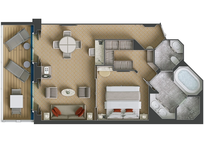 | SV - Superior Veranda Suite 30 m² + balkón 6 m². 7,8,9. paluba. Max 3 osoby. | 15 225 € 15 225 € za osobu |