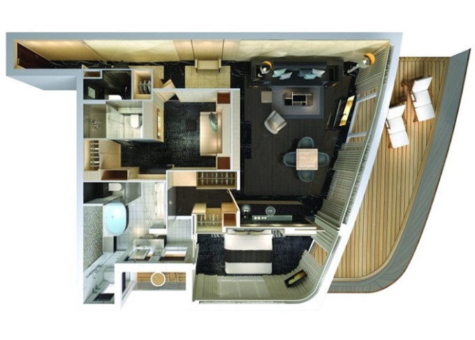 | HE - The Haven Courtyard Penthouse od 34 m² / balkón od 9 m². 17,18. paluba vpredu. Max 3 osoby, Výhody The Haven. | 26 538 € 13 269 € za osobu | ||