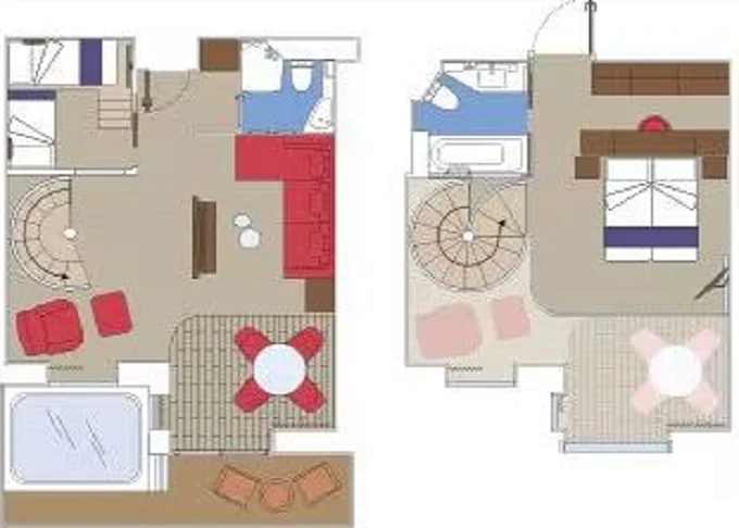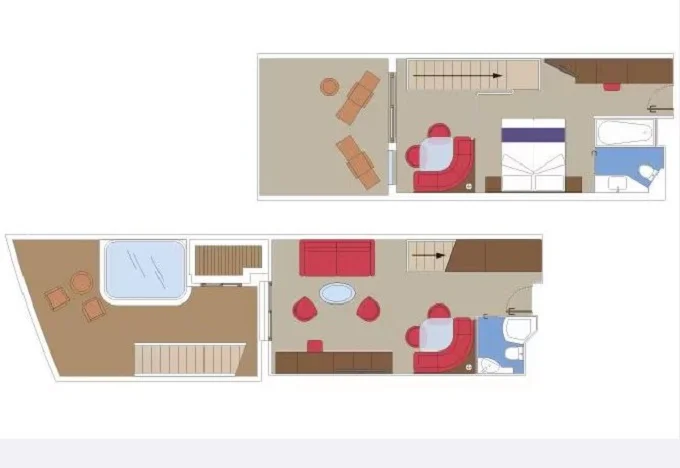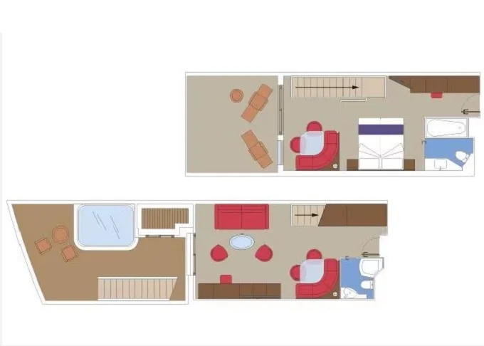 | YCD - Yacht Club Duplex Suite 46 m² + balkón 6 m². 2 podlažia, 2 kúpeľne (1 s vaňou) Max 4 osoby. 16. paluba. Cenový model MSC Yacht Club. | 8 942 € 4 471 € za osobu |