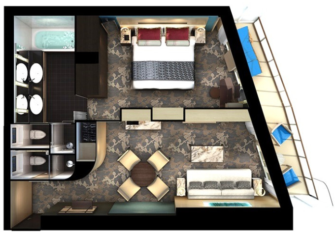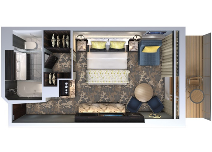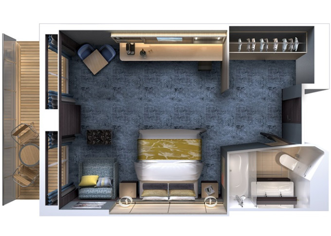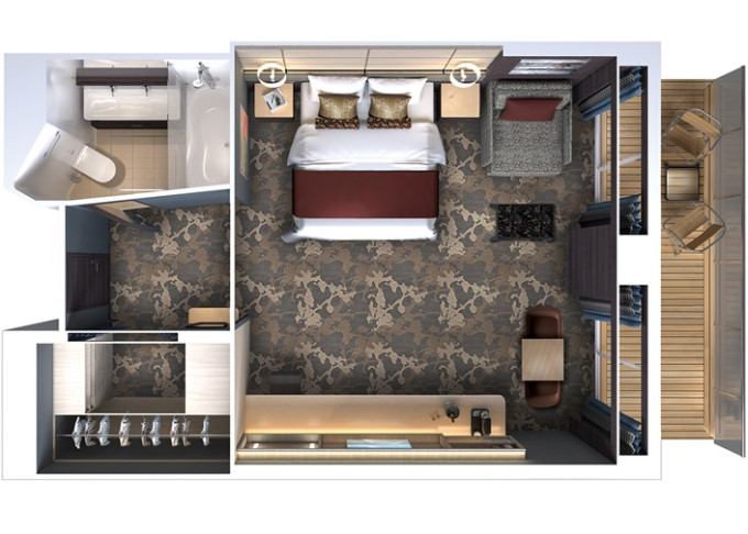 | HJ - The Haven Suite s balkónom 35 m² / balkón 5 m². 14. paluba - stred. Max 4 osoby. Výhody The Haven. | 12 302 € 6 151 € za osobu |