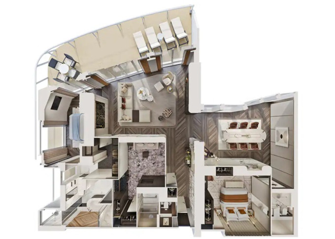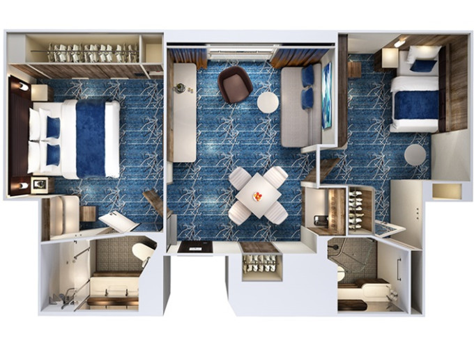 | H2 - The Haven Deluxe Owner's Suite 197 m² / balkón 45 m². 18. paluba vpredu. Max 6 osôb. Výhody The Haven. | 35 352 € 17 676 € za osobu |