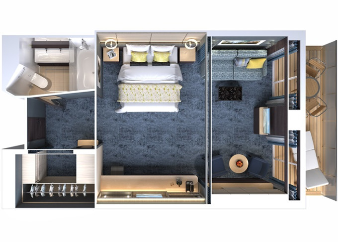 | H5 - The Haven Family Villa - 2 spálne 5 m² / balkón 11 m². 17. paluba - vpredu. Max 6 osôb. Výhody The Haven. | 20 848 € 10 424 € za osobu |