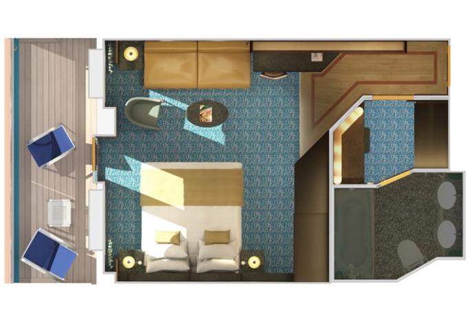 | 8S - Kajuta s balkónom Cloud 9 Spa 17 m² + balkón 3 m². 12. paluba vpredu. Voľný vstup do Spa a balíček Cloud 9 Spa. | 1 758 € 879 € za osobu | ||