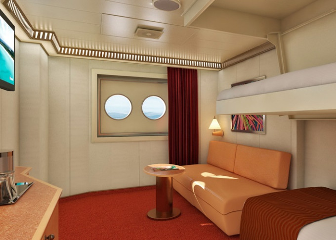| 4J - Vnútorná kajuta s oknom / obmedzený výhľad 17 m². Neotvárateľné okno / obmedzený výhľad. 6, až 10. paluba vpredu. | 1 248 € 624 € za osobu | ||
