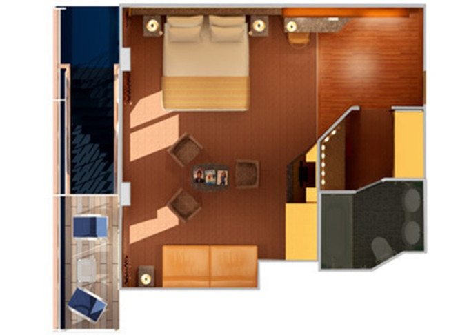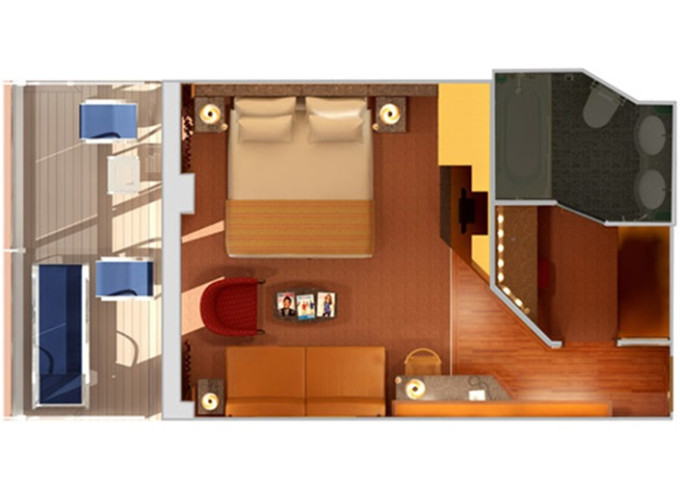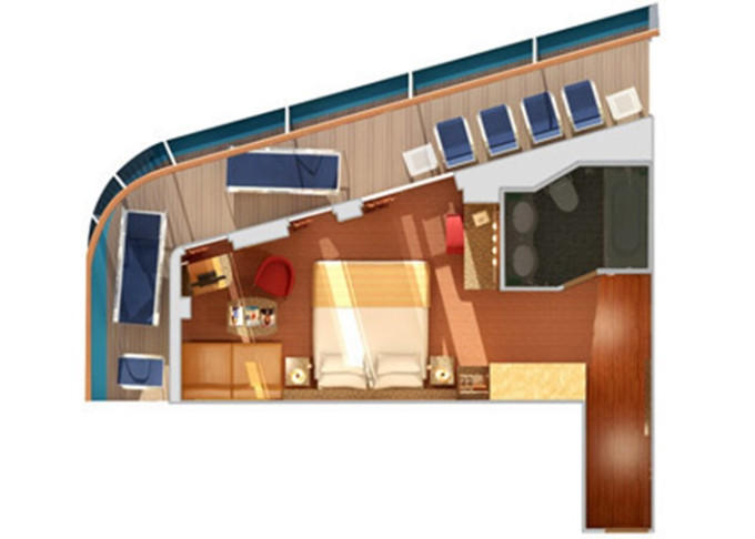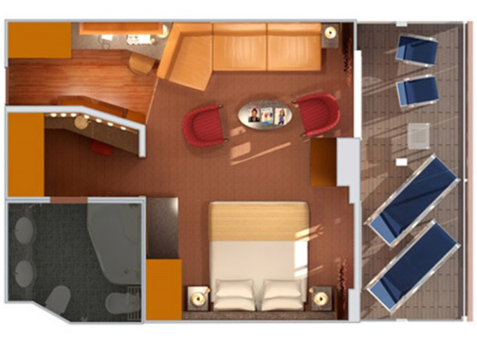 | VS - Suite Vista 23 m² + balkón 20 m². 4. až 8. paluba vzadu. Výhody Suite. | 3 730 € 1 865 € za osobu | ||