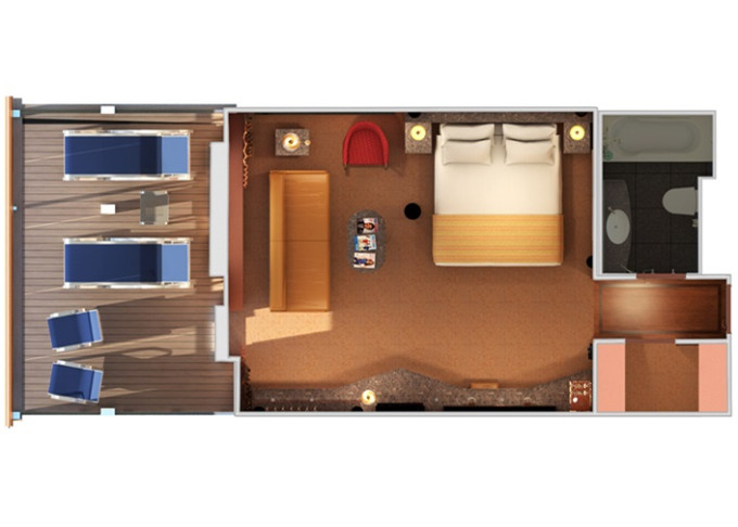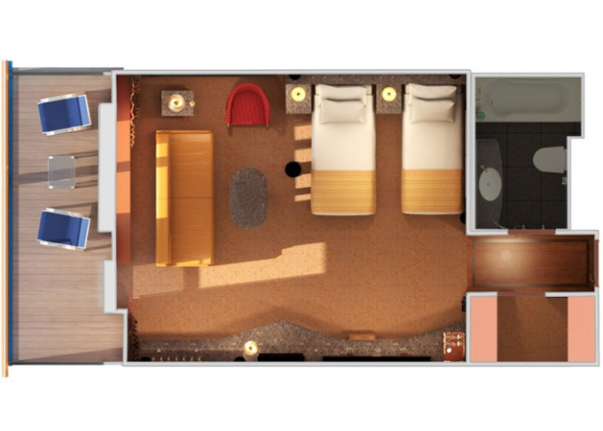 | ES - Grand Suite s veľkým balkónom 30 m² + balkón 10 m². 6. paluba stred. Výhody Suite. | 2 840 € 1 420 € za osobu | ||
