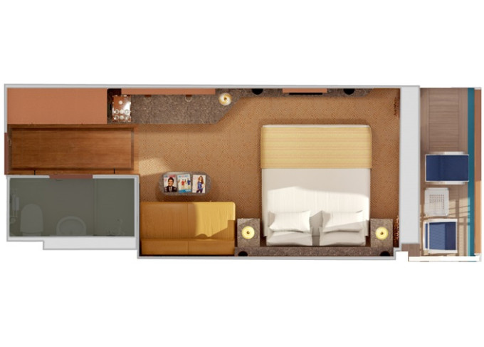 | 6E - Vonkajšia kajuta 17 m². Neotvárateľné okno. 7. paluba vpredu, stred. | 1 168 € 584 € za osobu | ||
